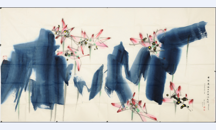 3月31日,這幅16平尺的彩墨作品現身湖南美術出版社旗下美侖美術館,其簡潔、大氣的用墨之中,蘊含著“月照洞庭波”的意境,體現了黃永玉高超的繪畫技巧。